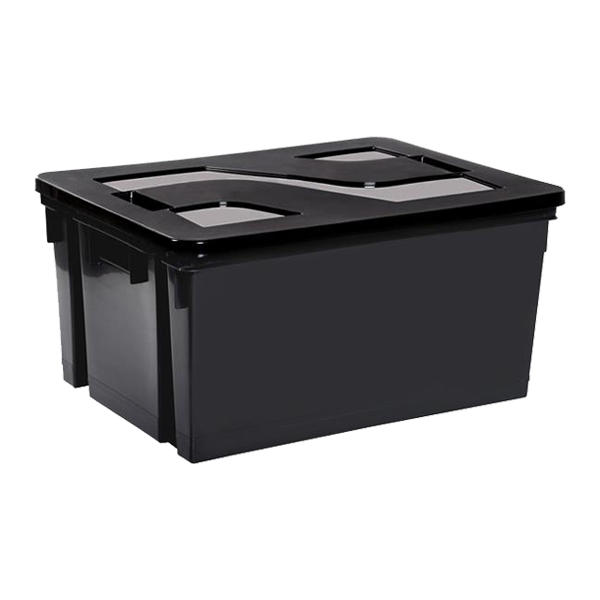 Equipé d’un couvercle noir. L. 56 cm. / l. 41 cm. / H.29.5 cm.