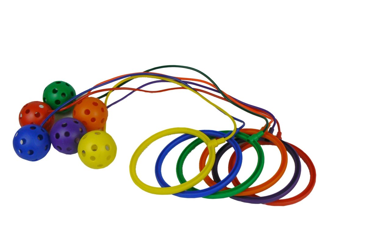 Après avoir enfilé sa jambe dans l’anneau, le but du jeu est de faire tourner la balle autour de soi sans toucher la ficelle avec son autre jambe.