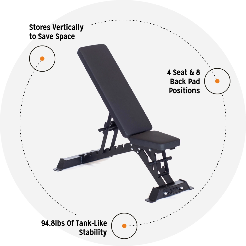 Tellement, la première version de notre banc réglable robuste Buzz-Saw ne pouvait pas exactement faire tous les angles de banc… c’est maintenant complètement corrigé. Notre modèle 2.0 actuel comprend 3 réglages de siège et 8 angles de dossier différents : 6 inclinaisons, 1 position plate ET 1 position déclinée. Par rapport à un banc plat, les angles de ce banc réglable robuste ajoutent des dizaines d’exercices supplémentaires à votre routine, vous aidant ainsi à construire un ensemble de pectoraux digne d’encaisser des chèques.