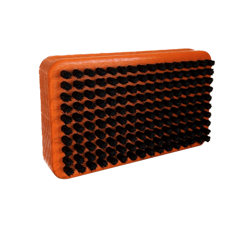 Après le brossage nylon dur (blanc), lustrez la semelle avec une brosse en crin souple à poils fins pour obtenir une glisse rapide et régulière.