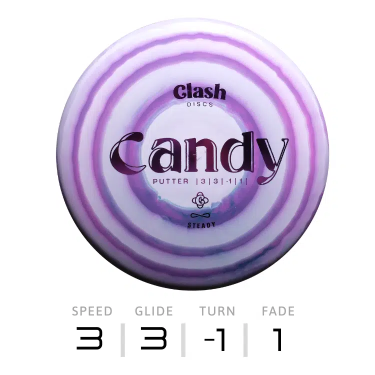 Le Candy est le putter sans talon de Clash Discs, offrant un toucher et une précision exceptionnels.