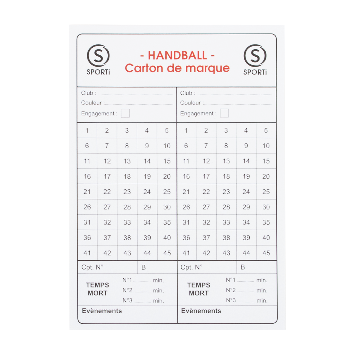 Carnet de 15 cartes seules d’arbitrage HANDBALL2,99 € quantité de Carnet de 15 cartes seules d’arbitrage HANDBALL Ajouter au panier Catégorie : Accessoires Description Avis (0) Description Carnet de 15 cartes d’arbitrage handball. Avis Il n’y a pas encore d’avis. Soyez le premier à laisser votre avis sur “Carnet de 15 cartes seules d’arbitrage HANDBALL” Annuler la réponseVotre adresse e-mail ne sera pas publiée. Les champs obligatoires sont indiqués avec *Votre note * Évaluation... Parfait Bon Moyen Pas mal Très mauvais Votre avis *Nom * E-mail * Enregistrer mon nom, mon e-mail et mon site dans le navigateur pour mon prochain commentaire. Produits similaires Promo ! Gants de Street Workout Noir Taille M 20,00 € Le prix initial était : 20,00 €.16,00 €Le prix actuel est : 16,00 €. Ajouter au panier Promo ! Poids chevilles ajustables corefx 30,94 € Le prix initial était : 30,94 €.24,75 €Le prix actuel est : 24,75 €. Ajouter au panier Promo ! SAC DE SPORT 15,00 € Le prix initial était : 15,00 €.12,00 €Le prix actuel est : 12,00 €. Ajouter au panier Promo ! Musculation Barre Olympique 2,20 m Grip Noir Professionnelle 199,99 € Le prix initial était : 199,99 €.196,00 €Le prix actuel est : 196,00 €. Ajouter au panier