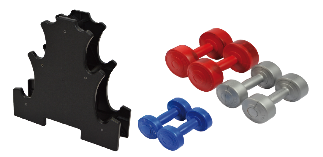 Haltères disponibles sous la référence 044075 et support pour haltères sous la référence 044090.