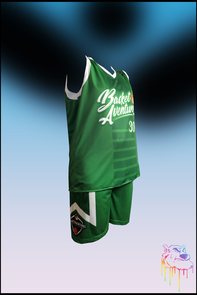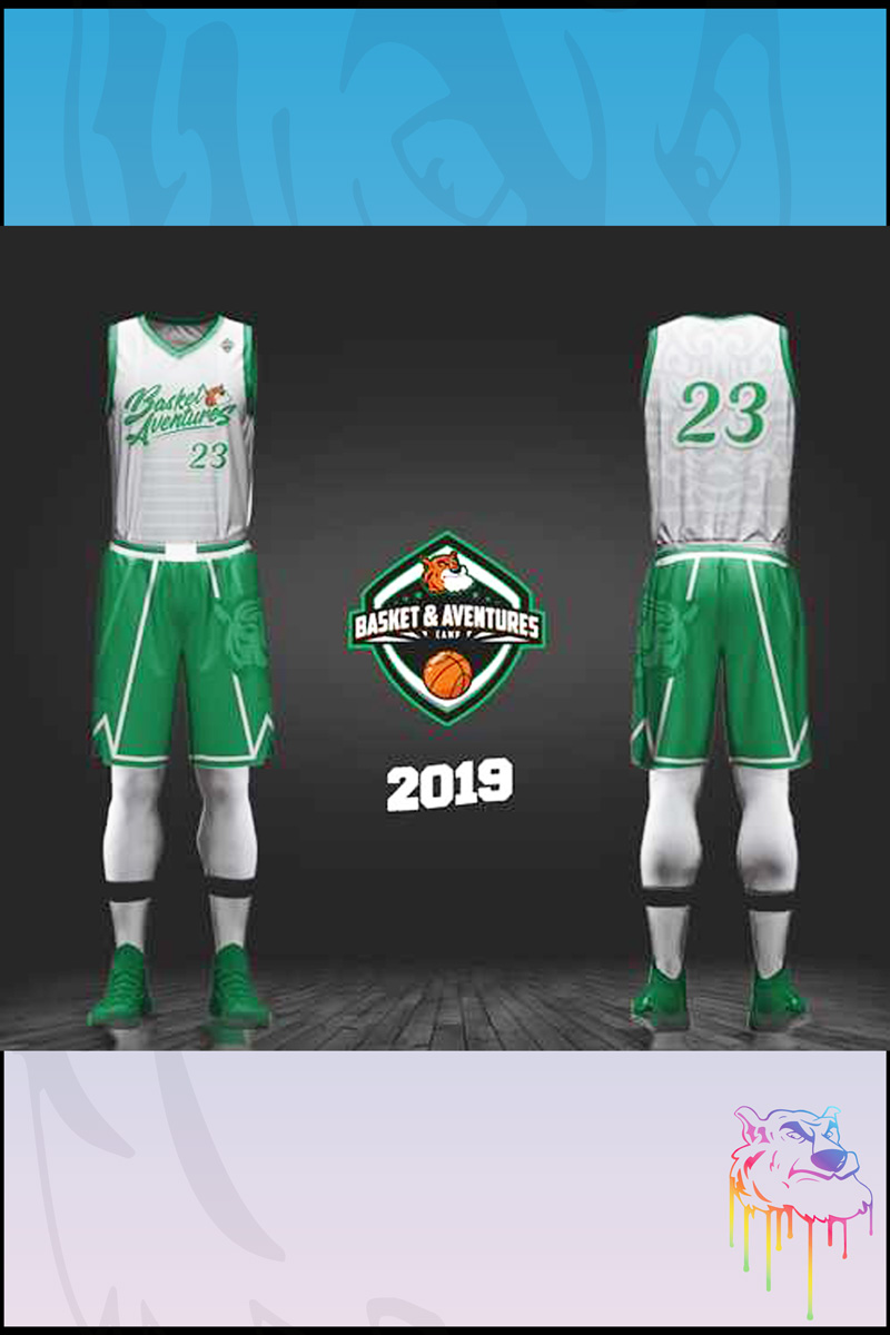 Depuis 2007, Basket & Aventures organise des stages de basket à travers le monde, chaque participant reçoit comme dotation une tenue avec un haut réversible, un short et un ballon. Voici les tenues élaborées par STAZPROD et confectionnées par AKILA.