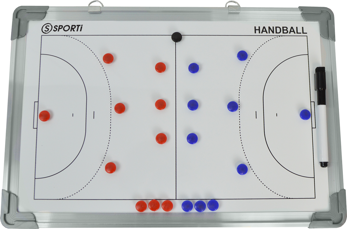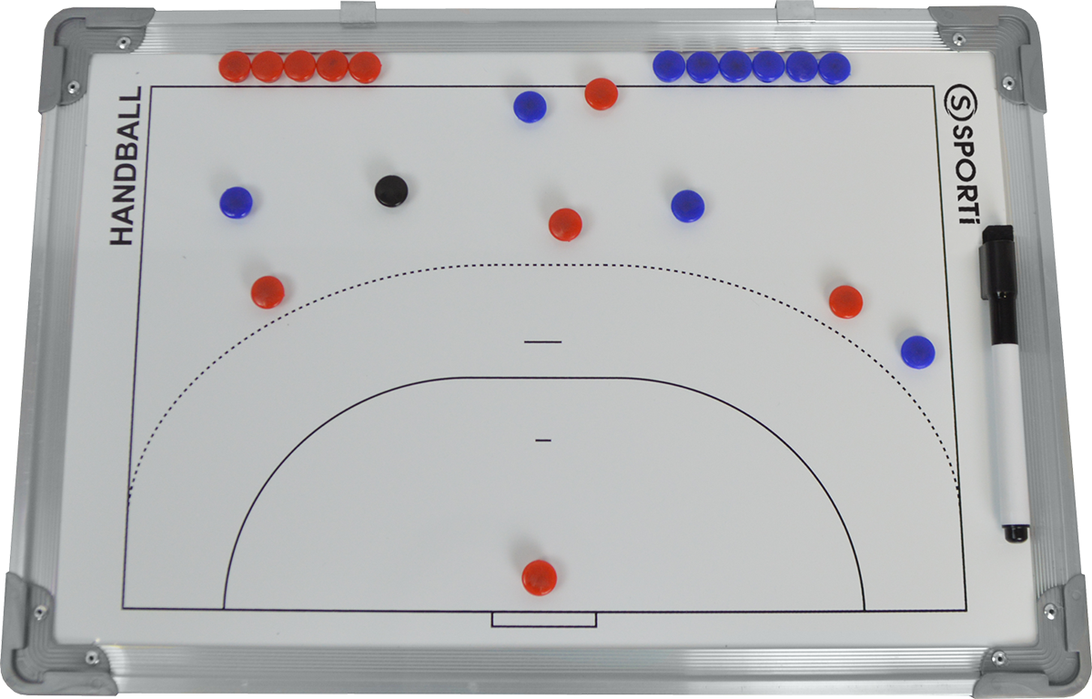 Tableau tactique rigide, avec d’un côté un terrain de handball entier et de l’autre un 1/2 terrain.