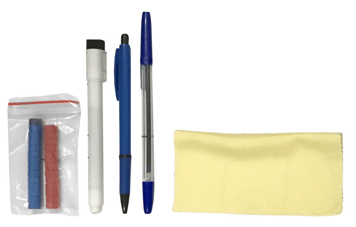 Livré avec une trousse comprenant des pions, 2 stylos, un feutre brosse et un chiffon.