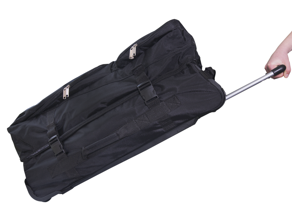100% polyester 1680 deniers haute qualité et doublure renforcée.