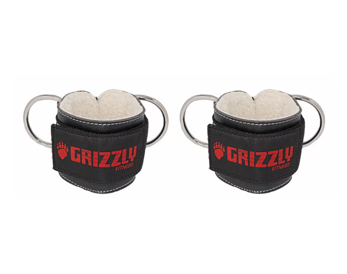 • Grizzly Fitness Premium Sangle de cheville en cuir rembourrée de 7,6 cm pour homme et femme