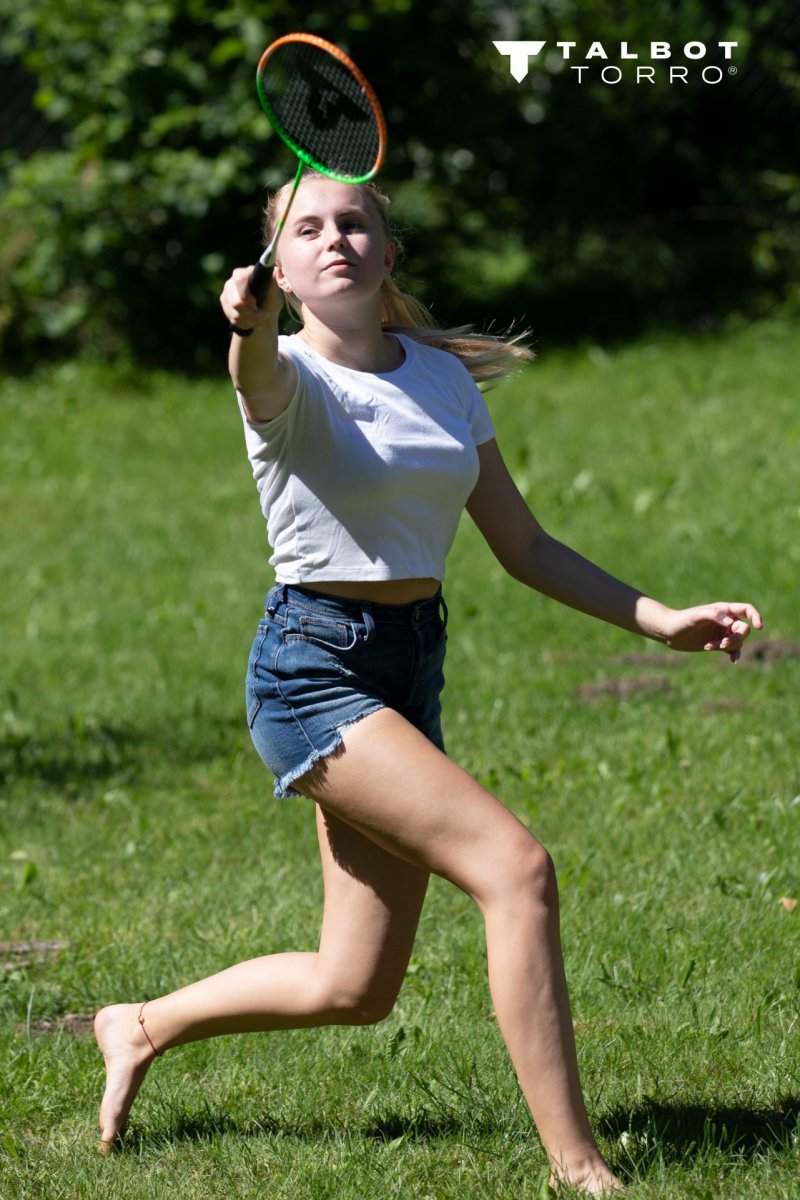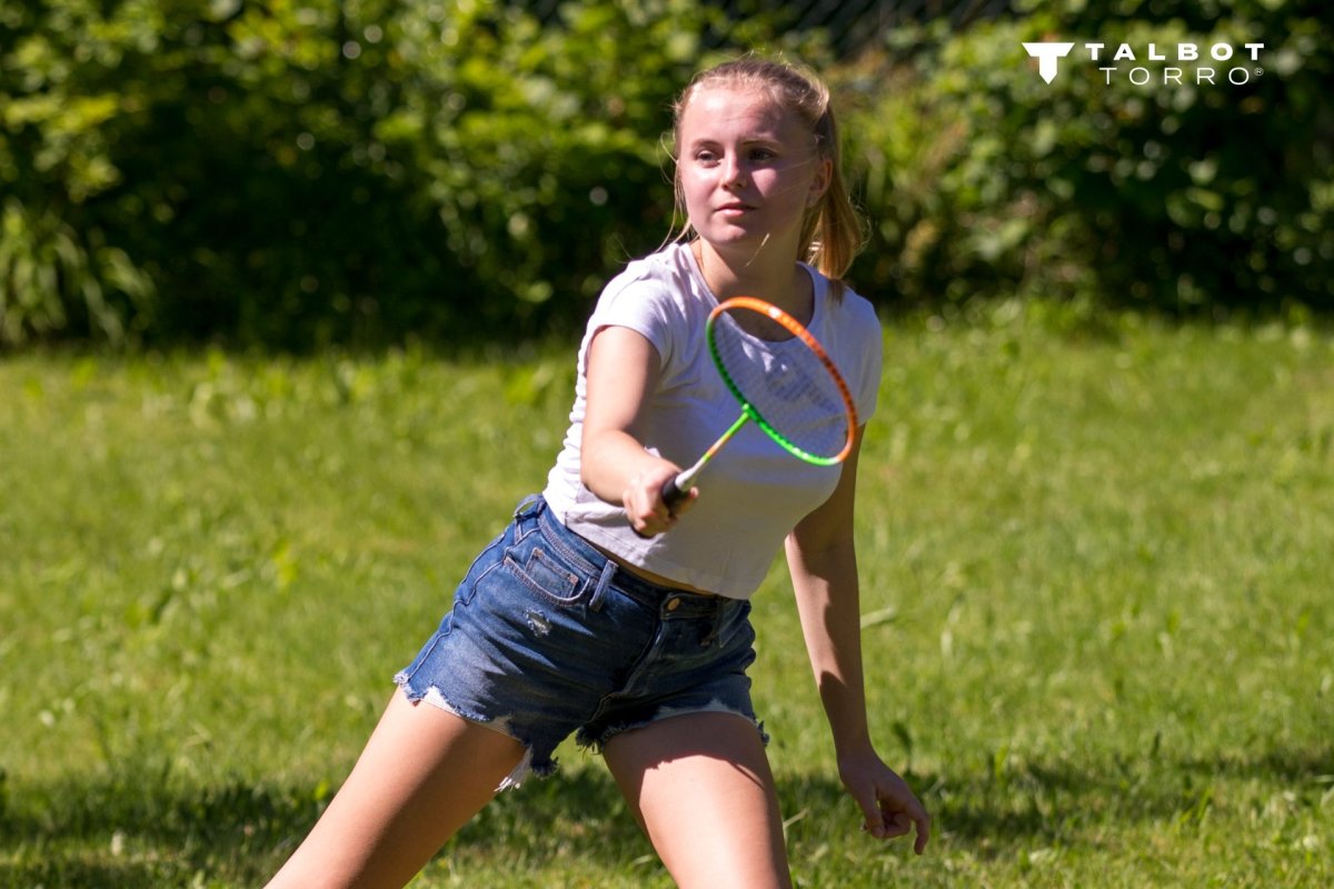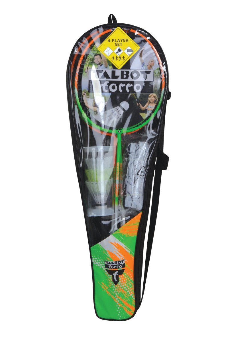 4 raquettes robustes en alu/acier trempé, joint en T fermé, corde multifilaments avec oeuillets,