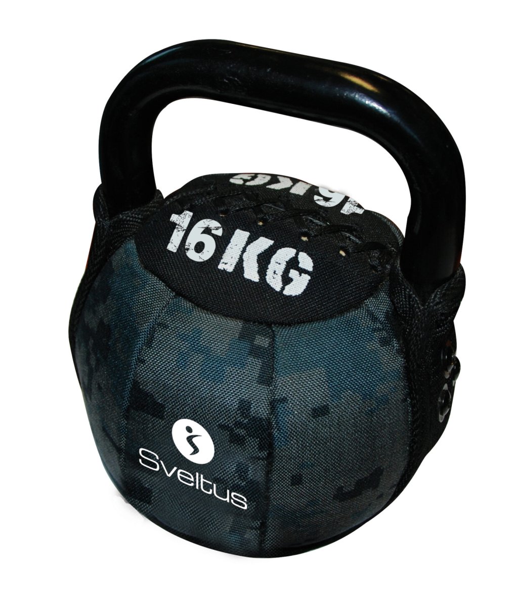 Ces kettlebells sont recouverts d’un tissu en coton au style camouflage et lestés de sable.