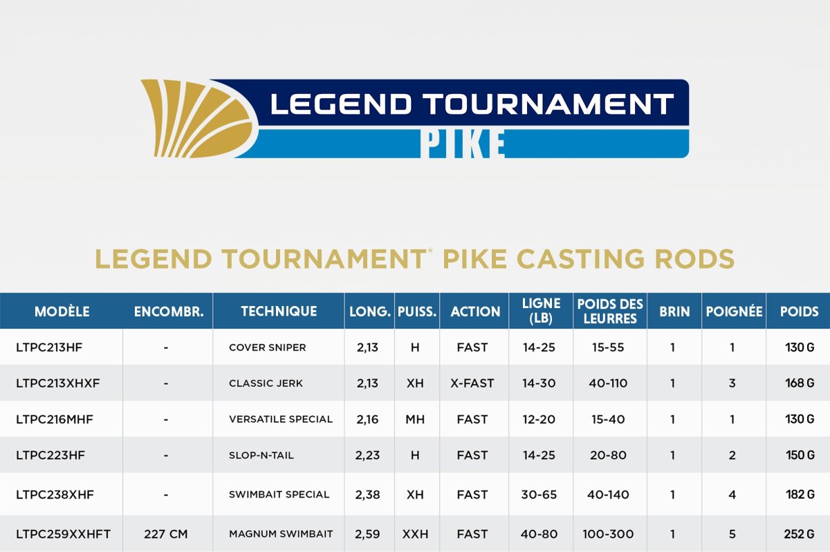 Des références devenues indispensables ont su séduire les utilisateurs mais il n’existait jusqu’alors aucune série complète et cohérente capable de répondre de façon globale aux spécificités de la traque de ce poisson emblématique. Après plusieurs années de réflexion et de longs mois de sélections, tests et autres réglages peaufinés en étroite collaboration avec les ingénieurs de la marque, nous avons aujourd’hui l’immense honneur de pouvoir vous présenter les Legend Pike.